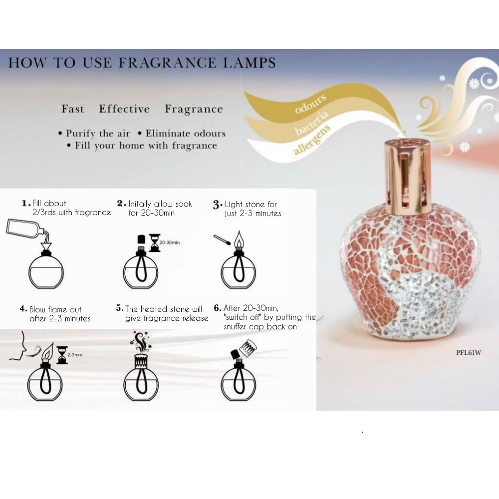 This Fragrance lamp Giftset pairs the Frosted Rose Fragrance Lamp with 250ml bottle Rose & Vanilla Musk lamp fragrance.