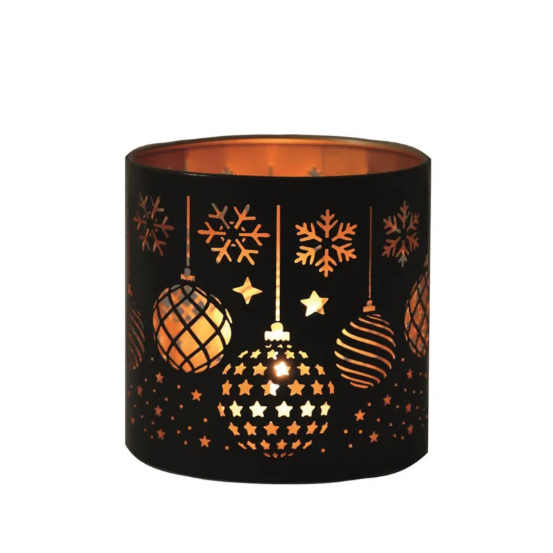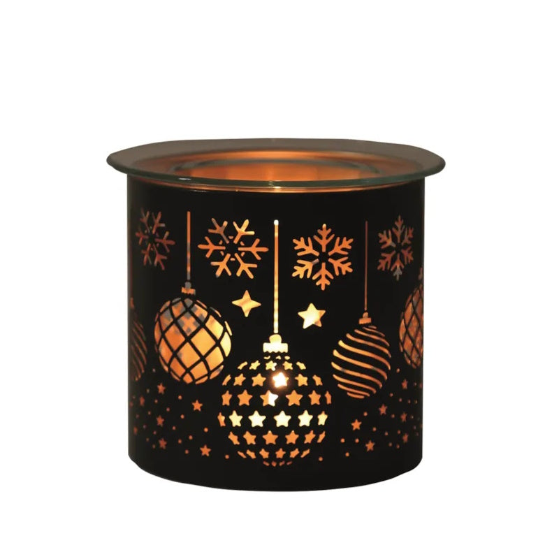 Tealight Wax Melter and Candle Holder - Black & Gold Silhouette Baubles 10.5cm