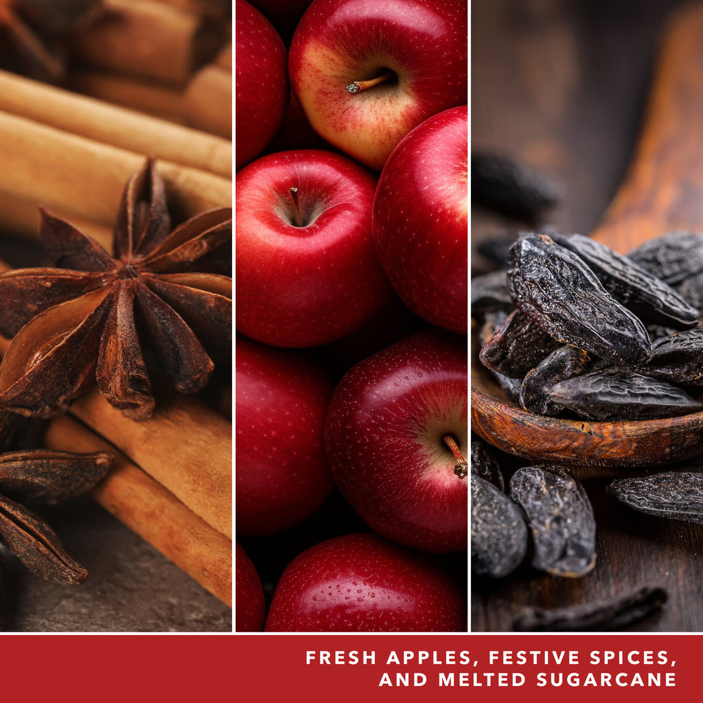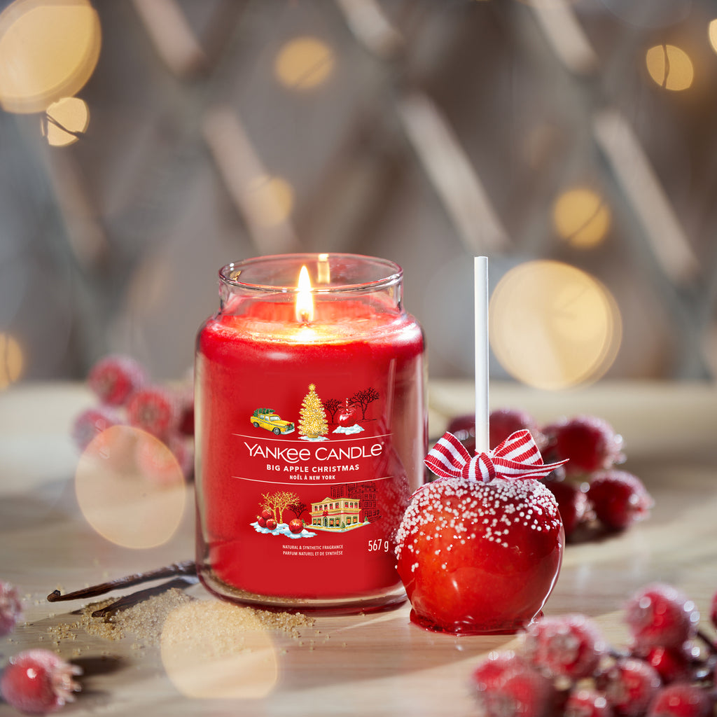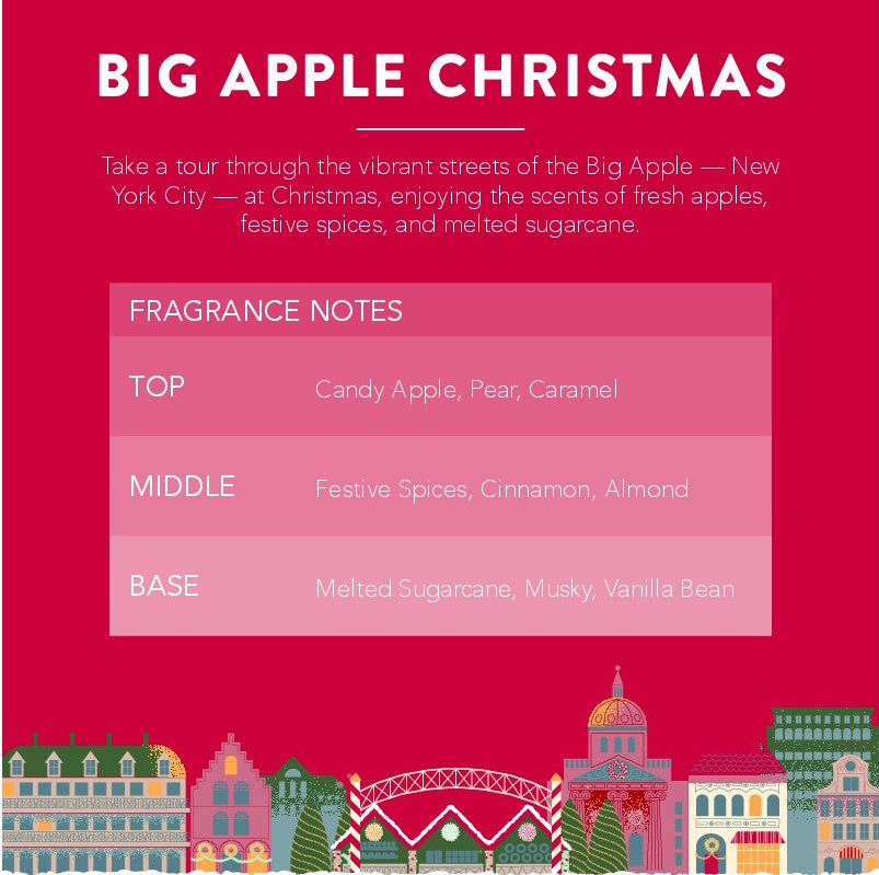 Maura w. I bought this candle in the after Christmas sale and I fell in love with it. It has the perfect blend and it smells just like a Toffe candly apple. This also has an amazing throw .