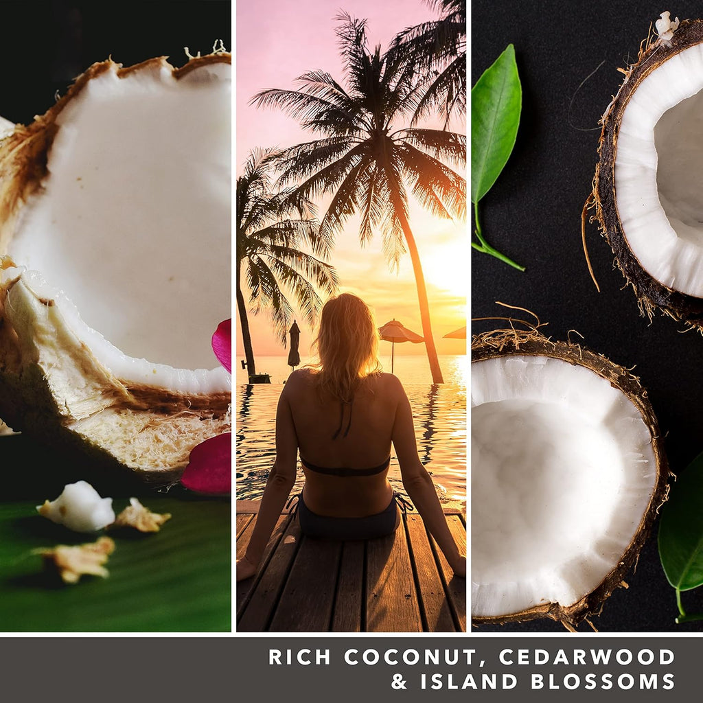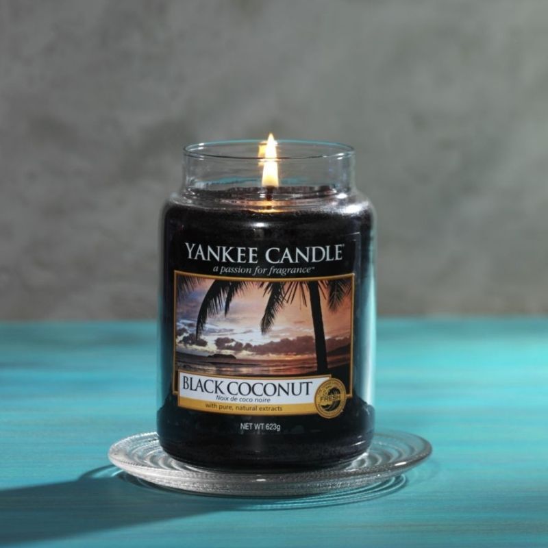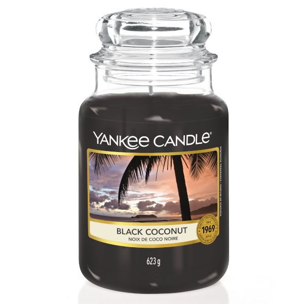 Yankee Candle Black Coconut.  Sunset in paradise...rich coconut, cedarwood and island blossoms promise and evening of luxurious tranquillity.