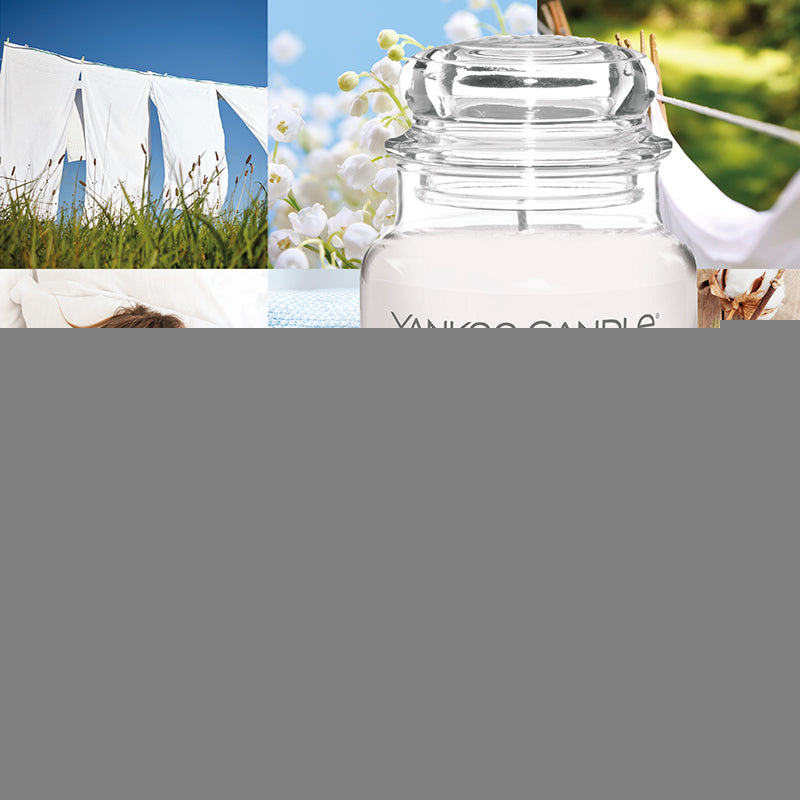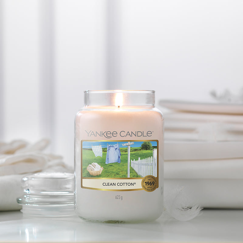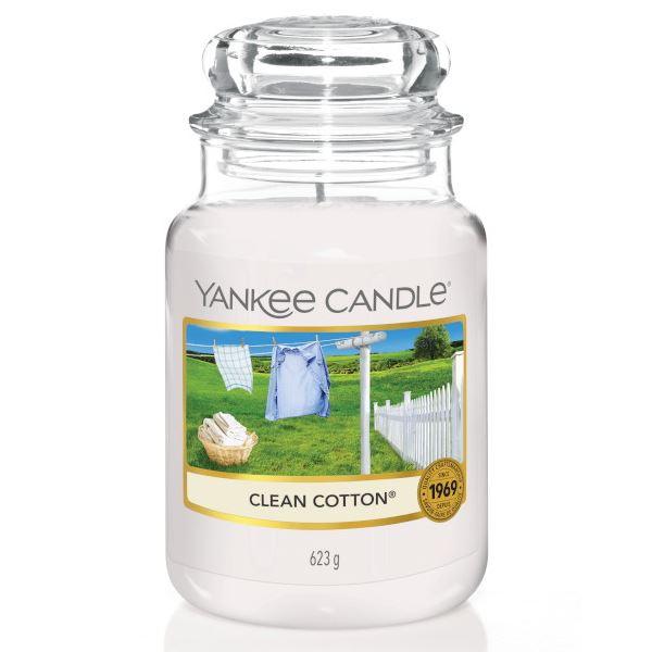 Yankee Candle Clean Cotton creates a familiar, natural fragrance in your home of sun-dried cotton combined with green notes, white flowers, and a hint of lemon.