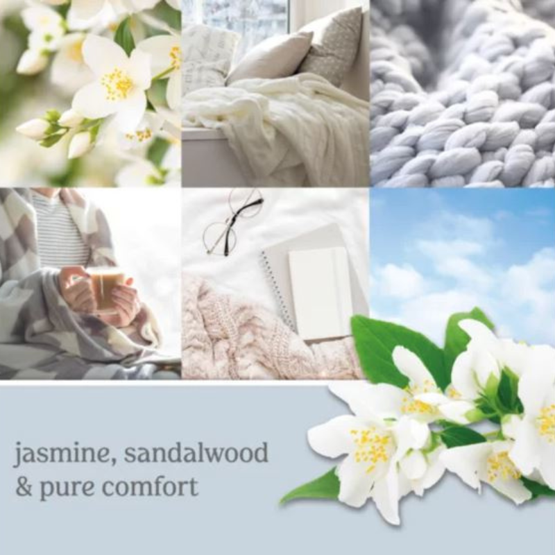 A meditative fragrance — balanced and centred with gentle jasmine, a whisper of patchouli and warm amber musk.