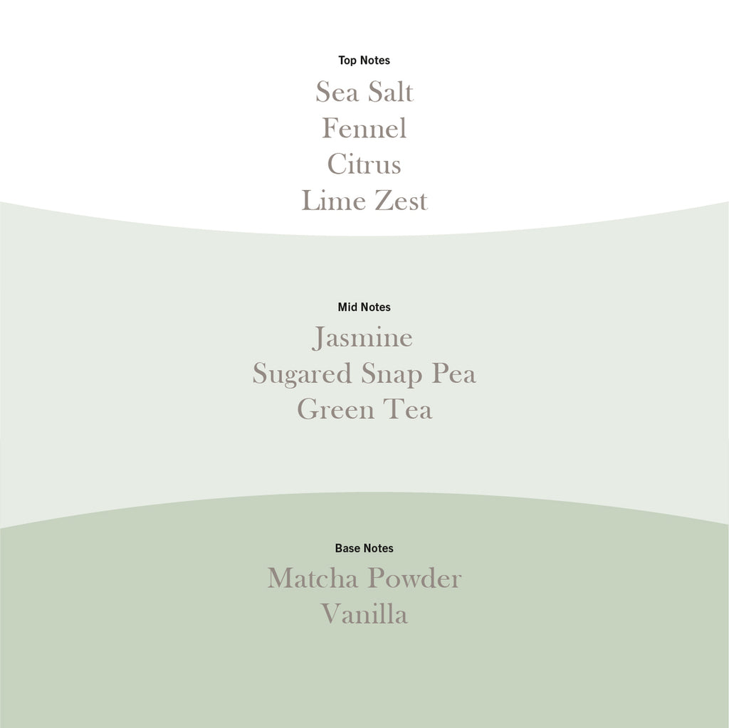 Indulge in the benefits of Matcha in a new way. Scents of delicate fennel, crisp citrus, and smooth green tea blend together in refined refreshment, perfect for creating a soothing & invigorating environment within your home.