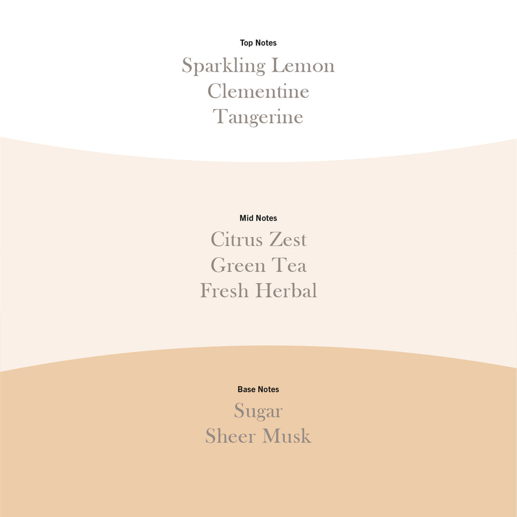Explore a citrus grove that’s ready for picking: sweet tangerine and zesty citron notes waft from the branches, while scents of fresh green herbs perk up at the base of the trees.
