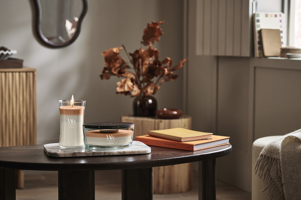This curated Trilogy candle blends the roasted coffee bean notes of Hazelnut Roast, creamy vanilla notes of Tonka & Almond Milk, and sweet honey syrup notes of White Honey into an invigorating gourmand fragrance.