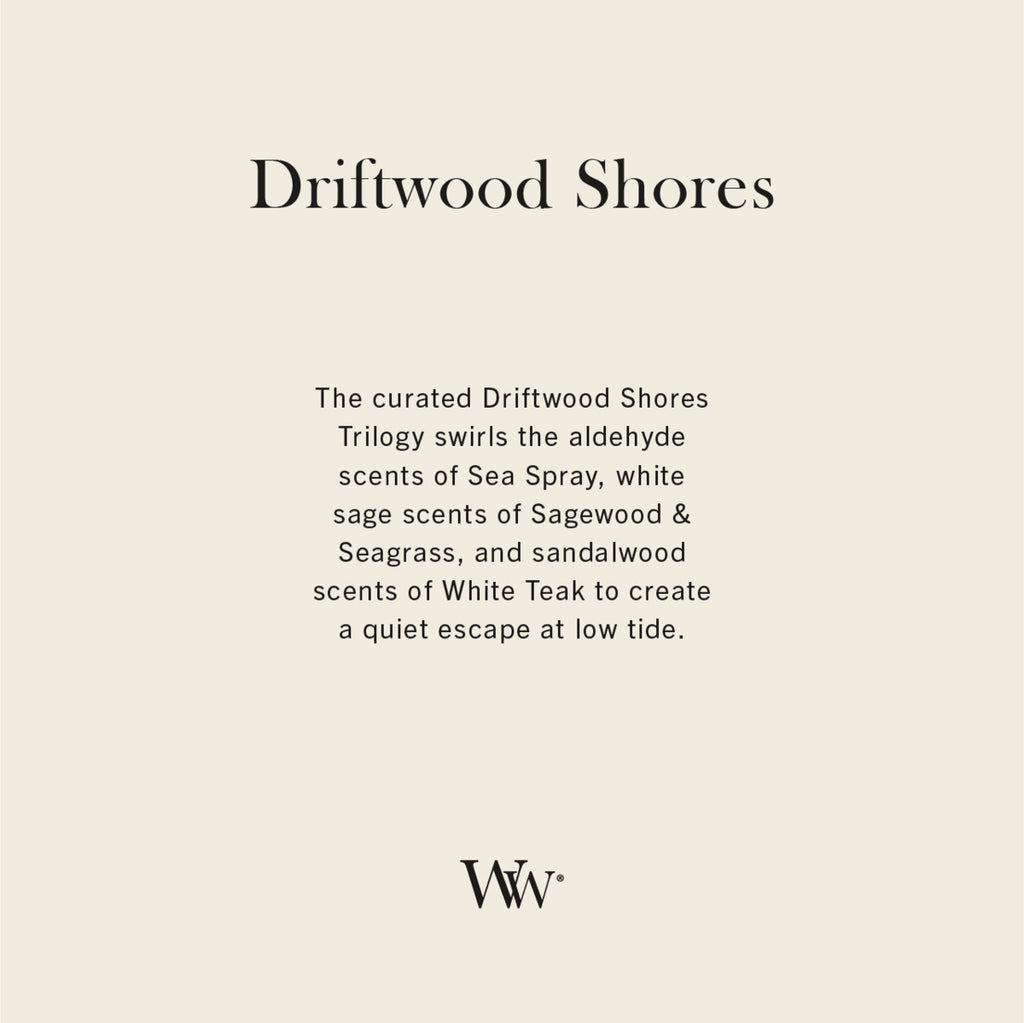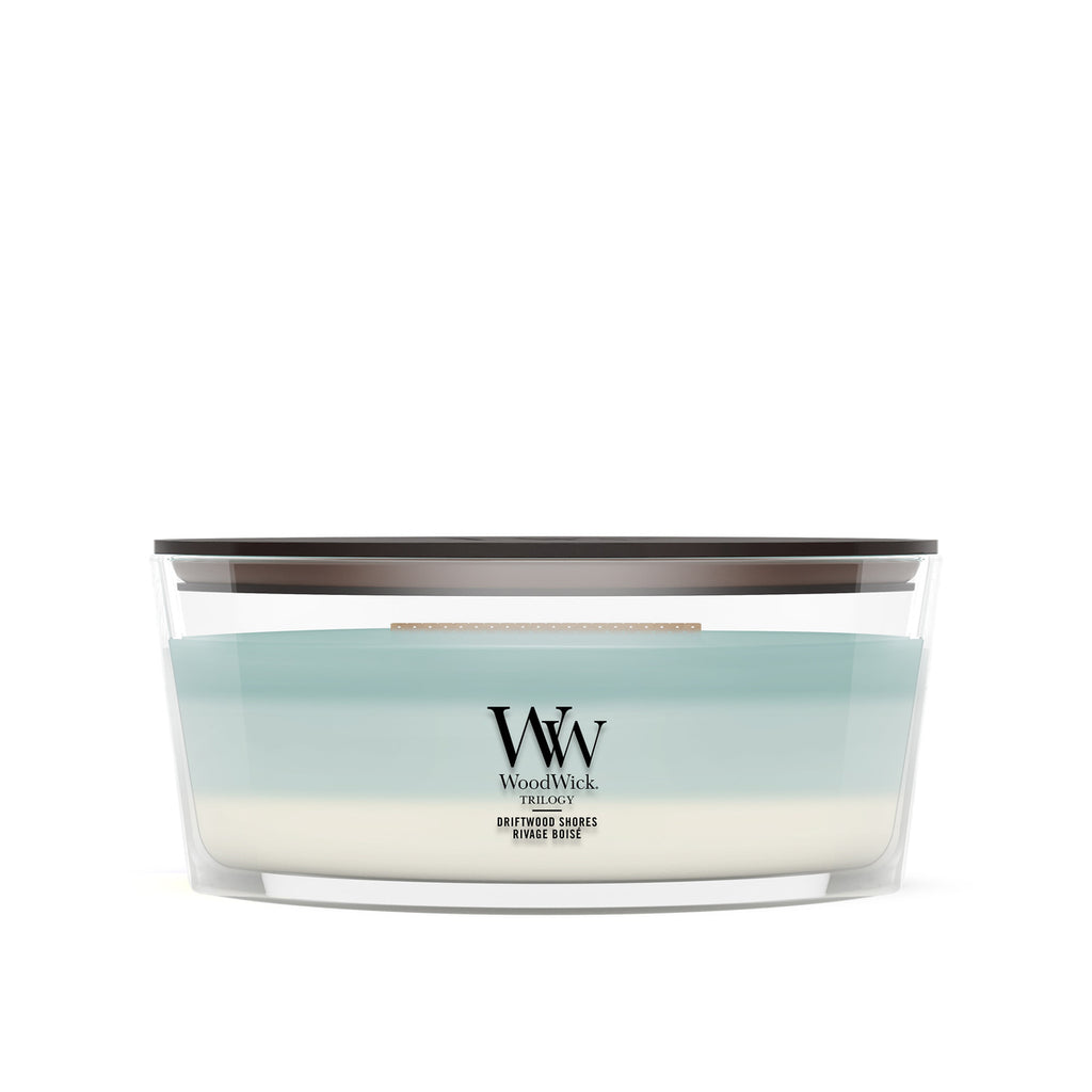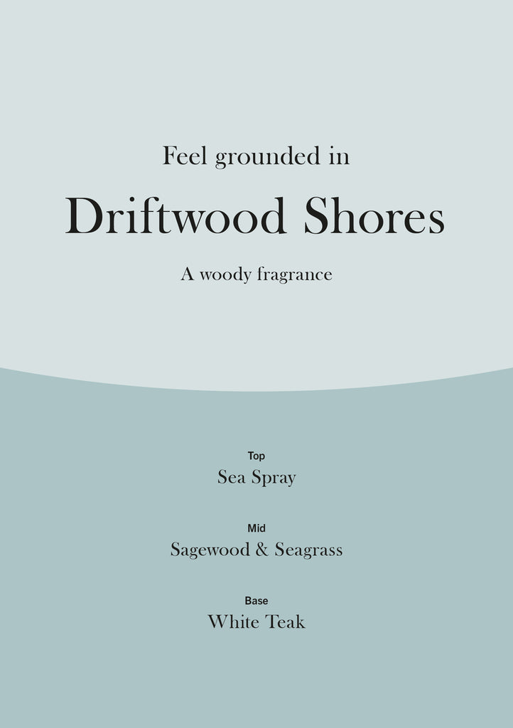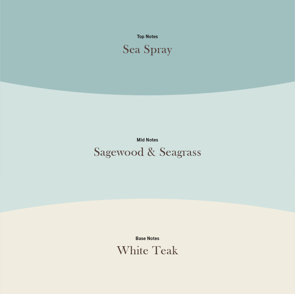 This curated Trilogy candle blends the aldehyde scents of Sea Spray, white sage scents of Sagewood & Seagrass, and sandalwood scents of White Teak to create a quiet escape at low tide.