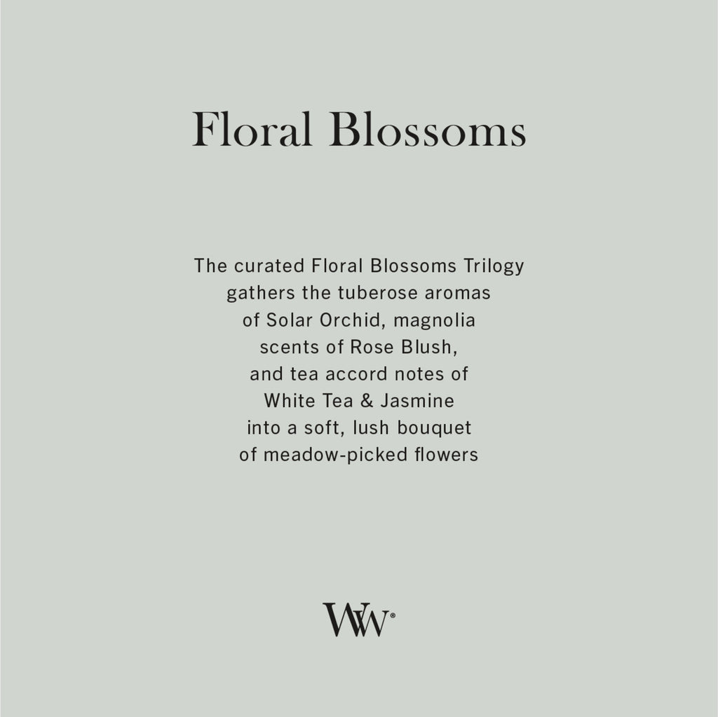 This curated Trilogy candle gathers the tuberose aromas of Solar Orchid, magnolia scents of Rose Blush & tea accord notes of White Tea & Jasmine into a soft, lush bouquet of meadow-picked flowers.