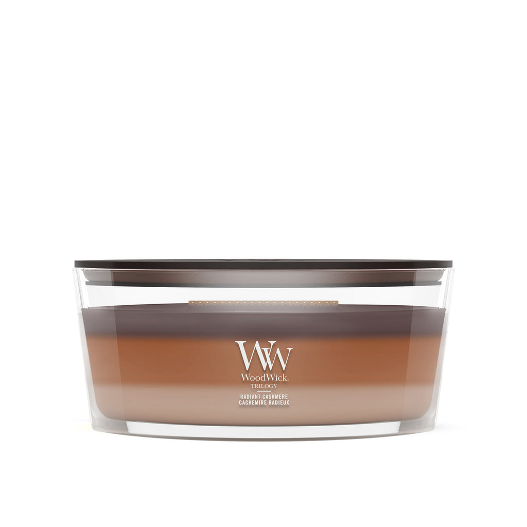 This curated Trilogy candle weaves together the orris aromas of Iris Woods, vanilla bean notes of Radiant Amber, and sandalwood scents of Cashmere to craft a comforting fragrance that’s both fresh and warm.