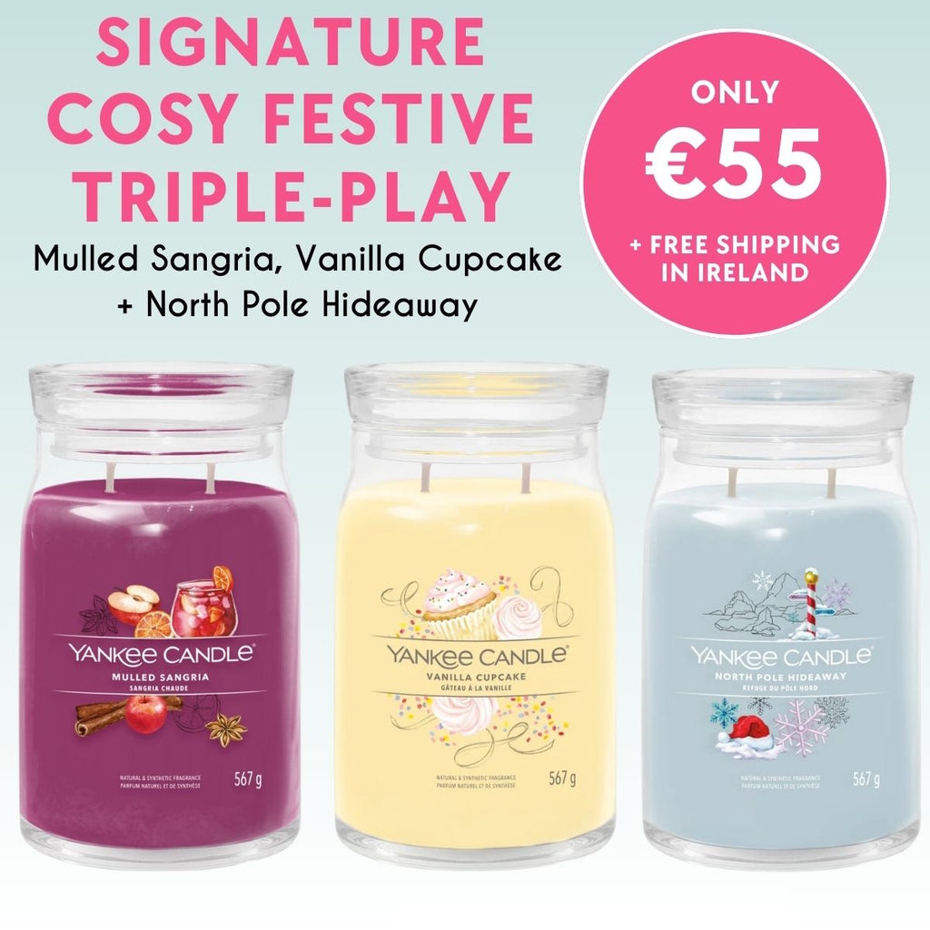 Three Large Signature Yankee Jars - Mulled Sangria, Vanilla Cupcake, + North Pole Hideaway for just €55!