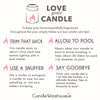 For maximum burn time, trim the wick before each lighting to ½ cm and ensure it is burning long enough to pool the wax across the entire circumference of the jar.