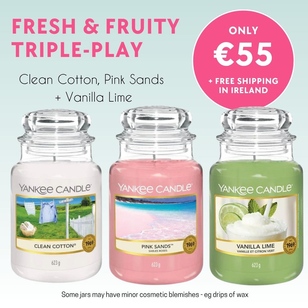 Three Large Classic Yankee Jars - Clean Cotton, Pink Sands & Vanilla Lime for just €55!