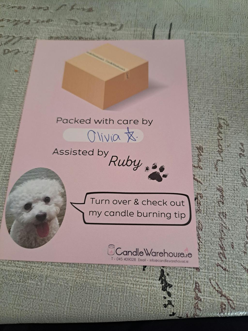 I ordered this and it came almost straight away. I cant seem to find this anywhere else I love it.I loved that it came with a little card saying who it was packed by (Olivia) and the little pic of the dog (ruby) and pawprint was adorable!Will be wording again when I eventually run out.