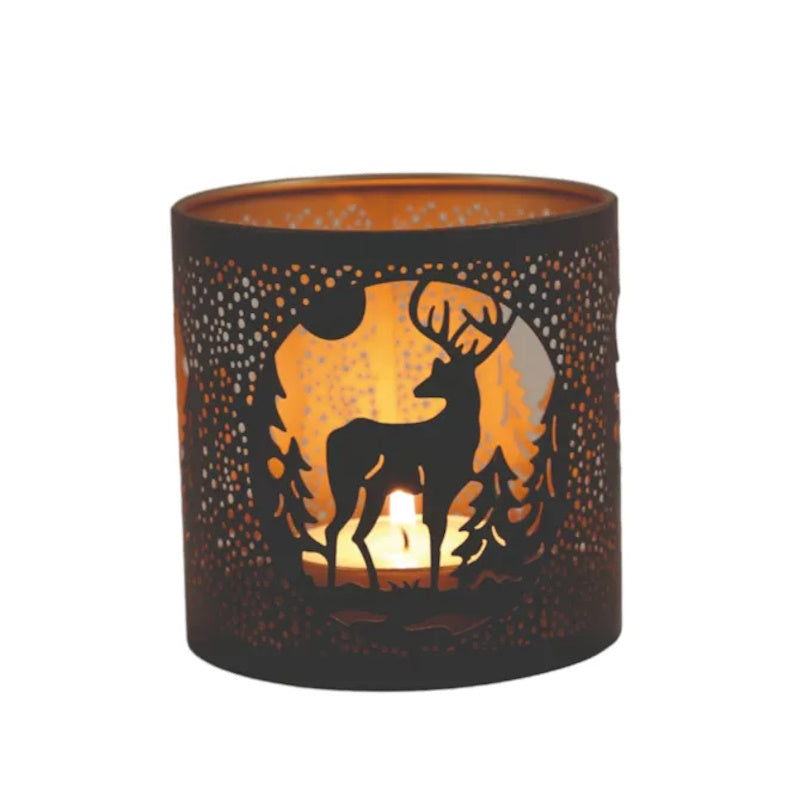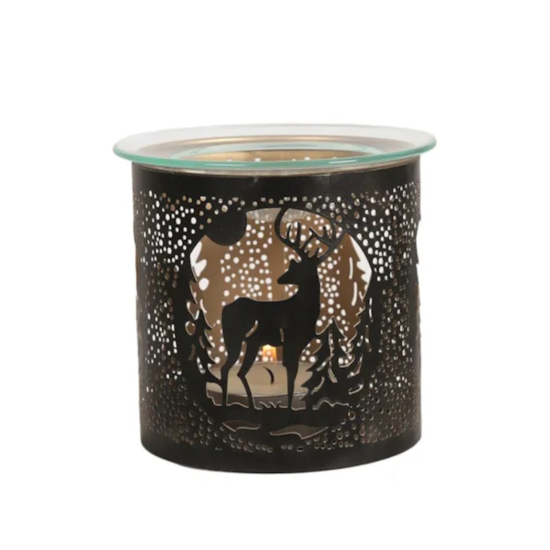 Tealight Wax Melter and Candle Holder - Black & Gold Silhouette Stag 10.5cm