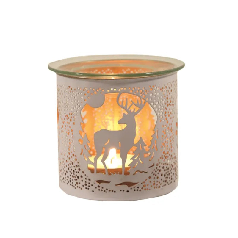 Tealight Wax Melter and Candle Holder - White & Gold Silhouette Stag 10.5cm